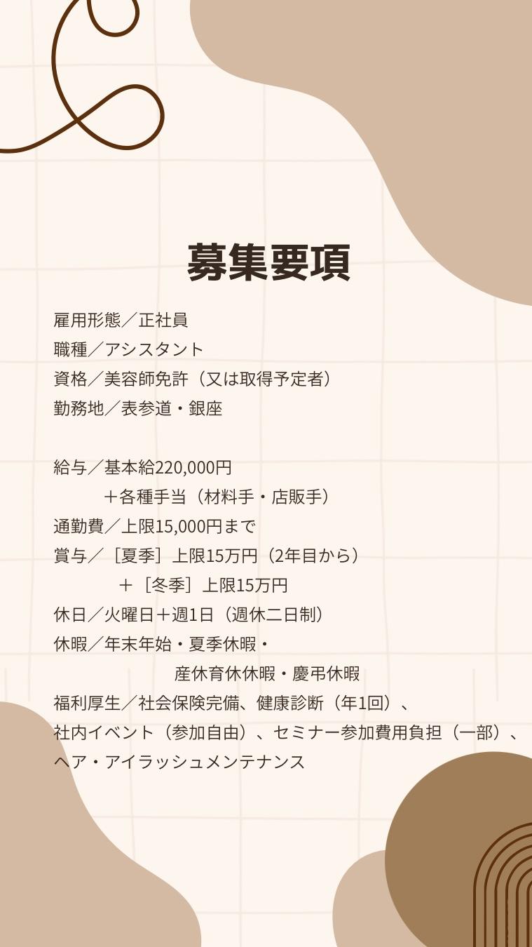 アシスタント1年目基本給22万+材料手当1万+店販歩合6千計236,000円+交通費